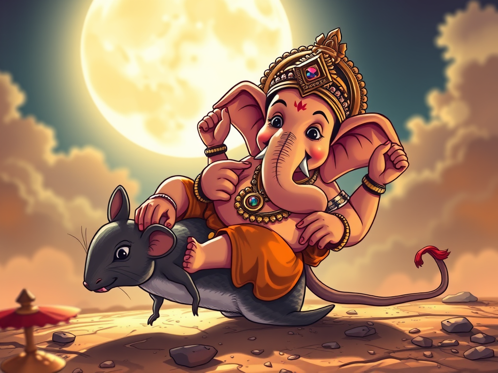 - Ganesha’s fall = even the great can stumble.