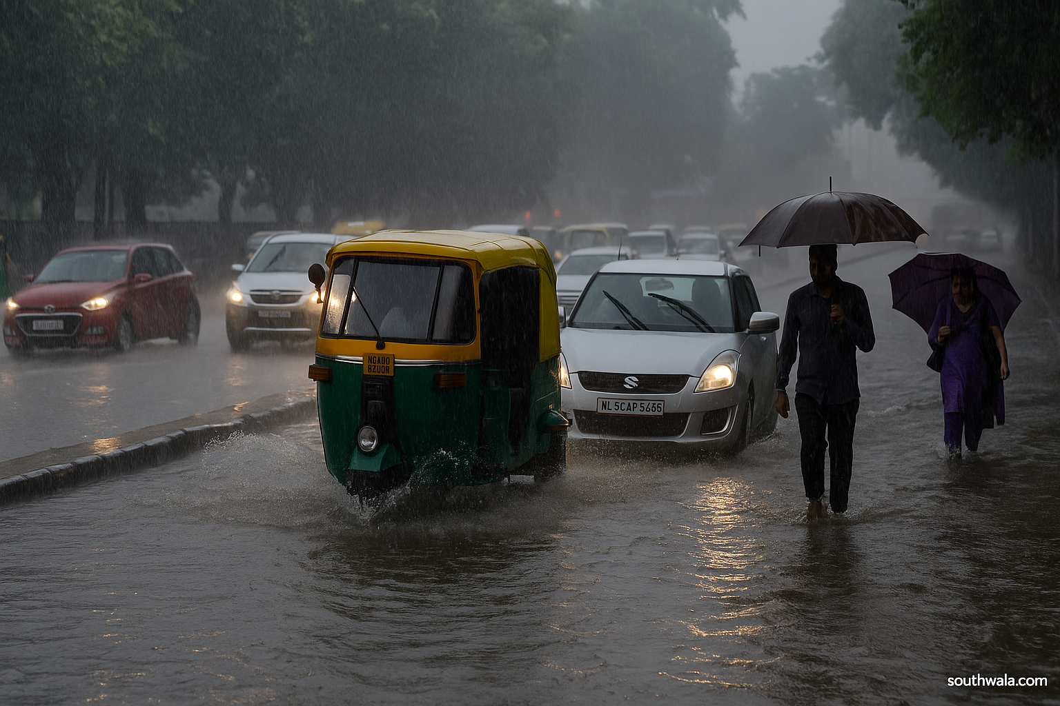 Friday morning began with widespread downpours across Delhi, Noida, Gurgaon, Faridabad and Ghaziabad. The heavy rain quickly led to severe waterlogging in many areas. Streets in parts of central Delhi and major business hubs in Gurgaon were flooded, making movement difficult for vehicles and pedestrians alike.